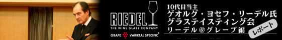 今回のグラステイスティングに使用されたグラスは、今年発表された新作「リーデル@グレープ」、このグラスの最大の特徴は、今までハンドメイドでしか成し遂げられなかったボウル底の尖り(引き脚)をマシンメイドで可能にしたこと。