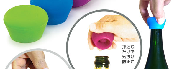 ボトル口に押し込むだけで、シリコンがボトル口の内側と外側をダブルで密着し、ボトルを持ち上げてもストッパーが抜けないほど、しっかり栓ができます。