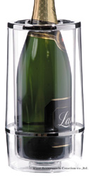 ワインやシャンパンボトルに被せたり、巻き付けるだけで、すばやく冷します(外気温度によりますが約5分)。テイスティング中も温まる事なく理想の温度を保つ事が出来ます。 |