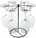 テイスティンググラス〜ボルドータイプ、ブルゴーニュやモンランシェ用の大振りで幅の広いグラスまで6脚が掛けられます。 |