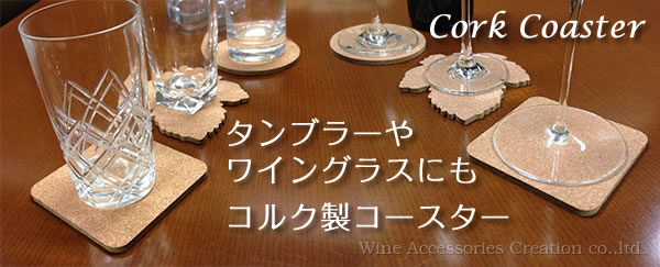 ウイスキーやビール、ジュースなどのコップ(タンブラー)、 ワイングラスにもお使い頂けるコルク素材を採用したコースターです。